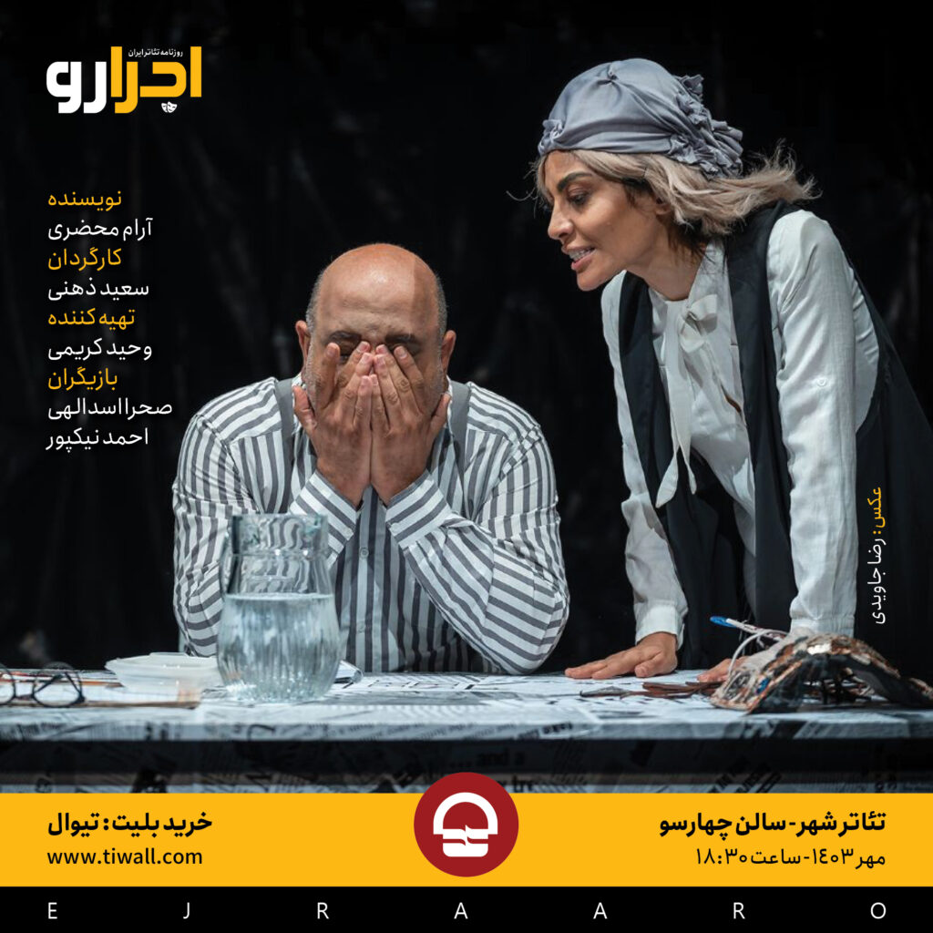 به لحاظ اجرایی، سعید ذهنی تلاش کرده با ترکیب یک فضای رئالیستی و اکسپرسیونیستی، مکانیسم بازجویی را مخوفتر از متن نمایشنامه نشان دهد. رویکردی که به نسبت موفقیتآمیز شده و تا حدودی برطرفکننده کاستیهای متن. نوعی رفت و برگشت مابین عینیت صحنه با ذهنیگرایی شخصیتها در جریان است و بازیگرانی چون صحرا اسدالهی و احمد نیکپور در تمنای اجراپذیر کردن این تقابل فزاینده. استفاده از نشانههایی چون قفسه کتاب، دیوارنوشتهایی که به امر نوشتن اشاره دارند و طنابی که از سقف اتاق بازجویی آویزان است دلالتهایی بیواسطه است به جهان نویسندگان و سرکوبهایی که در مسیر زندگی متحمل میشوند.